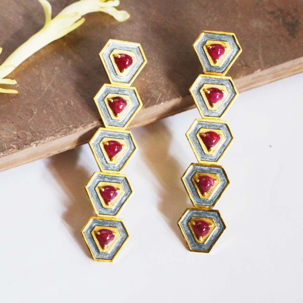 (Inclusive of GST)This classic pair of long earrings is your perfect all day through accessory, from formal occasions through casual meets. Handcrafted in Pure Silver with natural Rubies, this one’s going to be your personal favorite in no time.